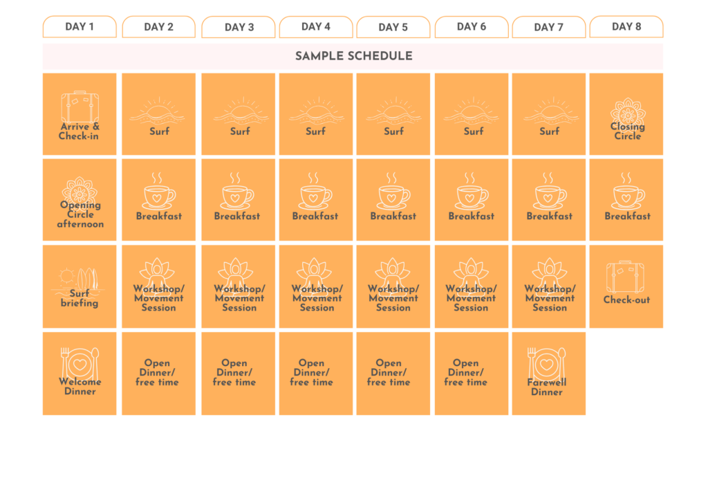 Build lasting friendships and a supportive network with other women who share your passion for surfing and personal growth. We are a small group retreat to provide an intimate and safe experience.